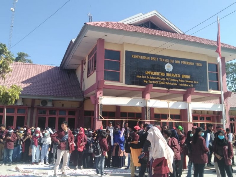 Unsulbar News, Majene. Sejak pukul 08.00, massa aksi mulai berdatangan dan berkumpul di pelataran gedung Rektorat Universitas Sulawesi barat (Unsulbar), Rabu (25/09).