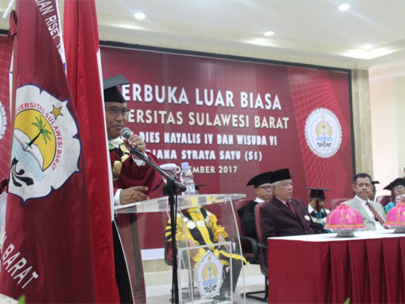 gambar : Rektor Unsubar Dr. Ir. H. Akhsan Djalaluddin,MS saat menyampaikan pidato dies natalis dan wisuda sarjana di aula masjid Ilaikal Mashir,Majene