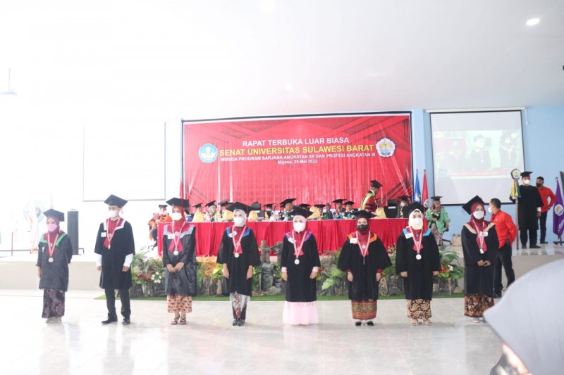 “Dengan ini mengukuhkan saudara saudari sebagai lulusan Universitas Sulawesi Barat pada jenjang sarjana dan profesi,” ujarnya.