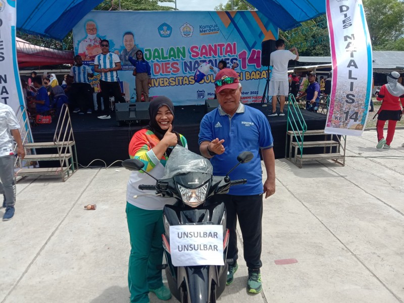 Adapun membawa pulang sepeda motor adalah Siti. Ibu rumah tangga dengan nomor undian 3760. Dalam wawancara dengan pihak Unsulbar News. Ia mengaku sangat bahagia bisa mendapatkan hadiah utama.