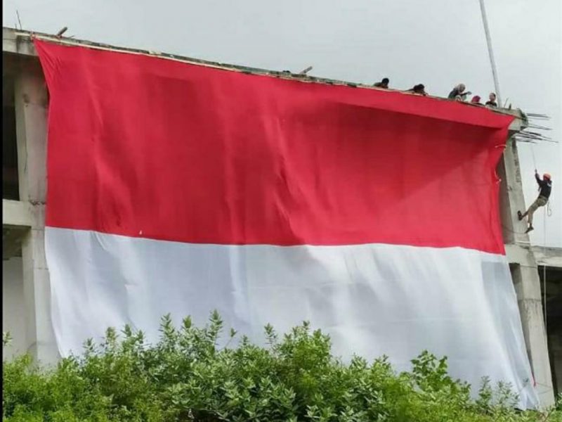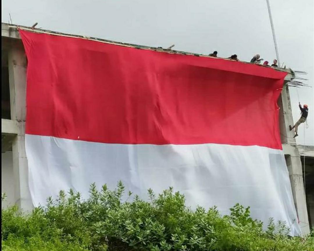 Unsulbar News, Majene. Unit Kegiatan Mahasiswa (UKM) Mahasiswa Pencinta Alam (MAPALA) Universitas Sulawesi Barat (Unsulbar) memperingati HUT Kemerdekaan Republik Indonesia (RI) ke 75 dengan membentangkan bendera merah putih sepanjang 14 × 9,5 Meter di Gedung A kampus baru Unsulbar di Padang- Padang Majene