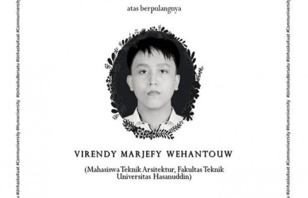 Ucapan turut berduka cita atas meninggalnya Virendy Marjefy Wehantouw (19)/Sumber foto: Instagram/Universitas Hasanuddin