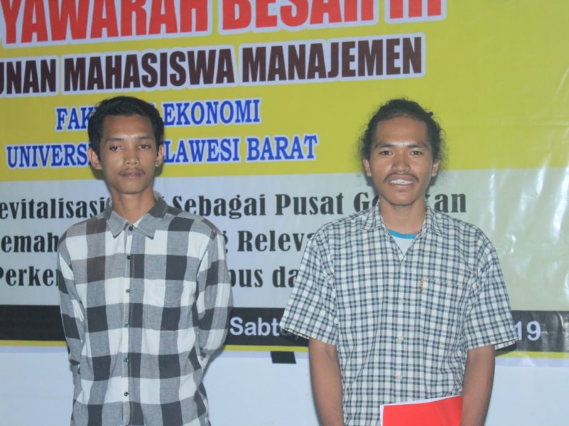 Unsulbar News, Majene. Musyawarah besar (Mubes) Himpunan Mahasiswa Manejemen (HMM) Fakultas Ekonomi (Fekon), Universitas Sulawesi Barat (Unsulbar) berakhir dengan terpilihnya Aldi Mustakim (angkatan 2017) serta Gazali (angkatan 2017) sebagai ketua dan waki ketua periode 2019-2020.