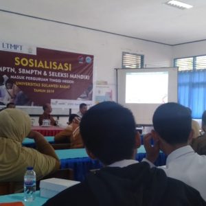 Unsulbar News, Majene. Jelang Penerimaan Mahasiswa Baru (PMB) 2019, pihak Universitas Sulawesi barat (Unsulbar) adakan sosialisasi seputar jalur seleksi masuk Perguruan Tinggi Negeri (PTN), Senin (04/02/2019)