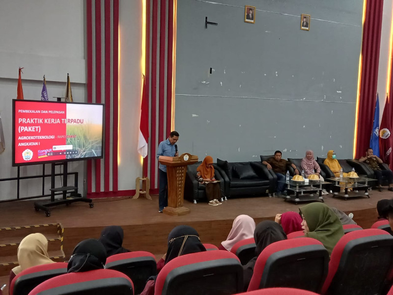 Unsulbar News, Majene – Program Studi Agroekoteknologi Fakultas Pertanian dan Kehutanan (Fapertahut), Universitas Sulawesi Barat (Unsulbar), adakan sesi pembekalan, sekaligus pelepasan mahasiswa program Praktik Kerja Terpadu (Paket) di Gedung Theater, Kamis (31/8/2023).