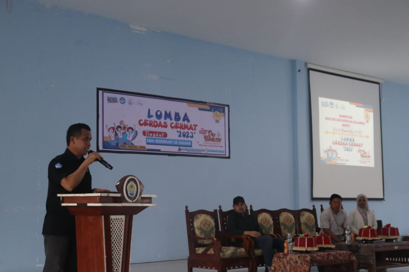 Unsulbar News, Majene – Rektor Universitas Sulawesi Barat (Unsulbar) Prof Muhammad Abdy M Si Ph D, hadiri pembukaan Lomba Cerdas Cermat tingkat Sekolah Menengah Atas (SMA) sederajat tahun 2023, Sabtu (25/11).
