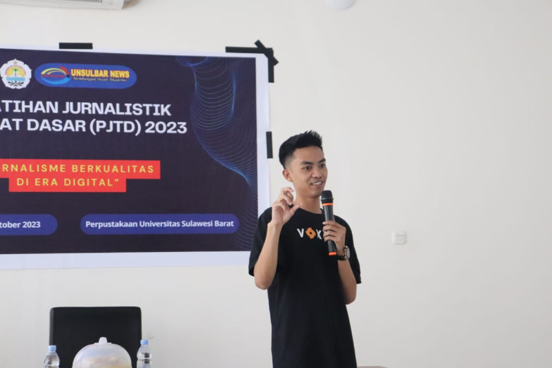 Unsulbar News, Majene – Mardiwansyah jadi salah satu pembicara, dalam Pelatihan Jurnalistik Tingkat Dasar (PJTD) 2023 Unsulbar News.