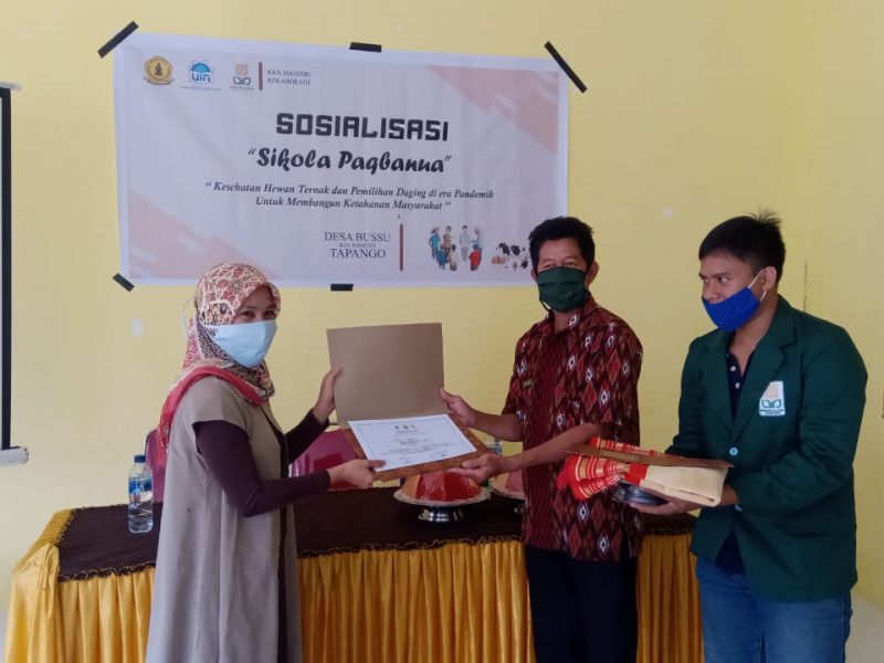 Unsulbar News, Majene. Penyuluhan di KKN Mandiri lintas Perguruan Tinggi (PT) yakni UIN Sunan Kalijaga, UIN Syarif Hidayatullah dan Universitas Wijaya Kusuma Surabaya tentang Sosialisasi Kesehatan Hewan dan Pemilihan Daging di Era Pandemi Covid 19 dalam rangka membangun ketahanan masyarakat dilaksanakan pada hari Rabu, 22 Juli 2020 di Desa Bussu,Kecamatan Tapango Kabupaten Polewali Mandar