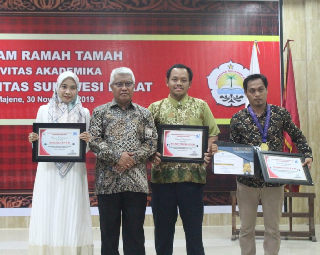 Unsulbar News, Majene – Tiga dosen menerima penghargaan dalam Malam Ramah Tamah Civitas Akademika Universitas Sulawesi Barat (Unsulbar) yang dilaksanakan di Aula Masjid Ilaikal Mashir, Majene, Sabtu (30/11/2019).