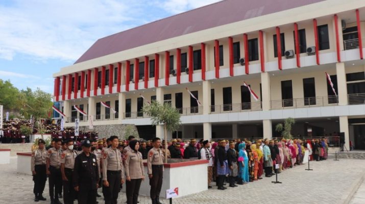 Upacara pengibaran bendera merah putih ini berlangsung pelataran Gedung Kembar, Kampus Baru, Padzang-padzang, Kelurahan Tande Timur, Kecamatan Banggae Timur, Majene Sulbar, Rabu (17/8/2022) pagi.